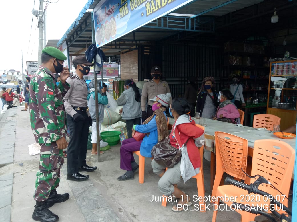 Polsek Dolok Sanggul Bersama Dengan Koramil Melakukan Pendisiplinan Protokol Kesehatan Terhadap Masyarakat
