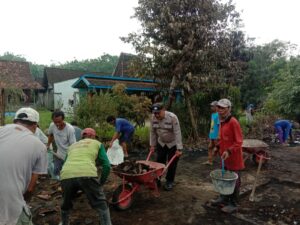 Selain bantuan paket sembako, Polsek Jepon bersama Koramil juga membantu melaksanakan kerja bakti membersihkan sisa sisa kebakaran rumah ibu Sukini bersama warga sekitar.