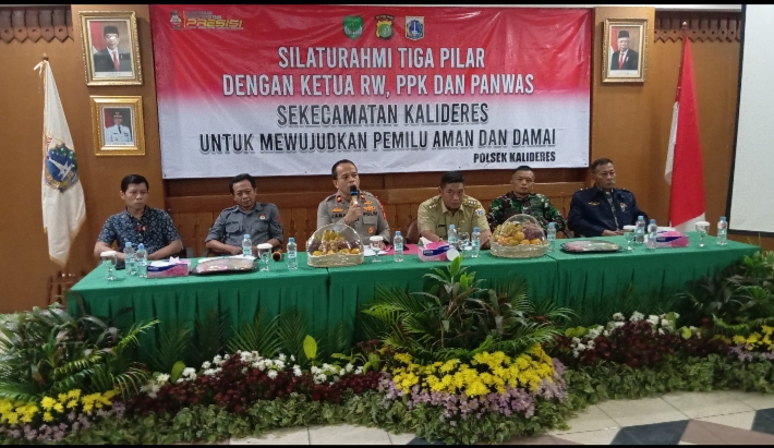 Kalideres – Maspolin.id|| Polsek Kalideres menghadiri acara silaturahmi bersama dengan 3 pilar kecamatan Kalideres dan para ketua rw, PPK, serta Panwas am se kecamatan Kalideres di aula kantor kecamatan Kalideres, Jl peta utara no 26, Rt 01/07kel pegadungan Kec Kalideres Jakarta Barat, Rabu (18/10/2023) pukul 13.00 Wib.