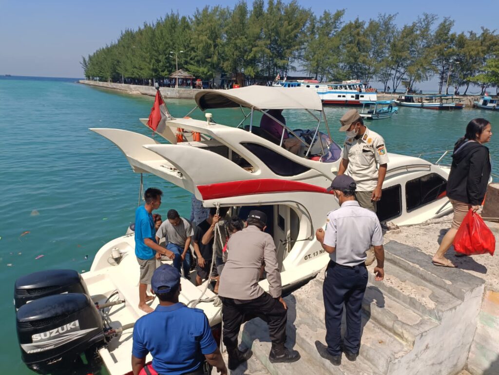 Diketahui, sejak pagi hari aparat gabungan sudah berada di Dermaga Pelabuhan Pulau Pari untuk melakukan pengamanan, pengawasan protokol kesehatan dan memberikan imbauan keselamatan berlayar baik kepada nahkoda kapal maupun kepada penumpang kapal.