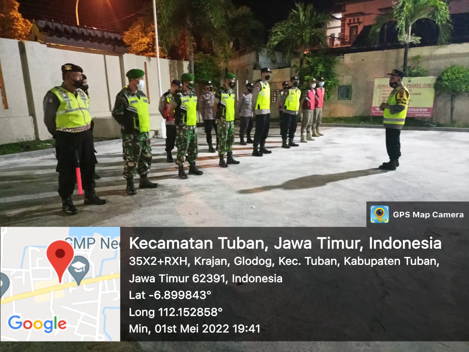 Apel gabungan bersama TNI dan Satpolpp Kecamatan Palang Kabupaten Tuban, pada hari Minggu ( 01/05/2022) Malam.