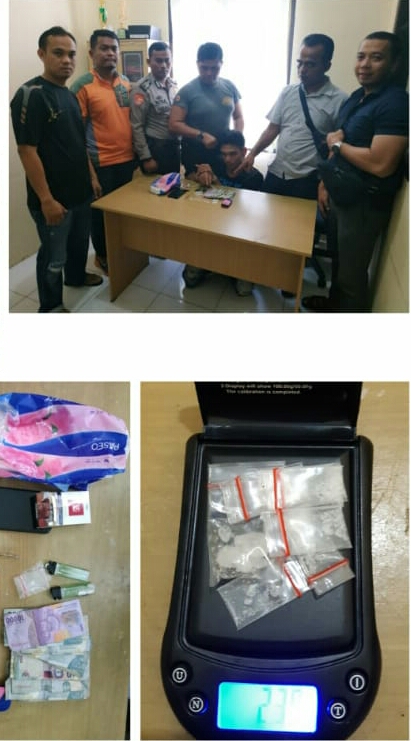 Bersama pelaku turut diamankan barang bukti 7 paket narkotika jenis shabu seberat 2,39 gram, 2 buah Hp dan beberapa peralatan penggunaan shabu.