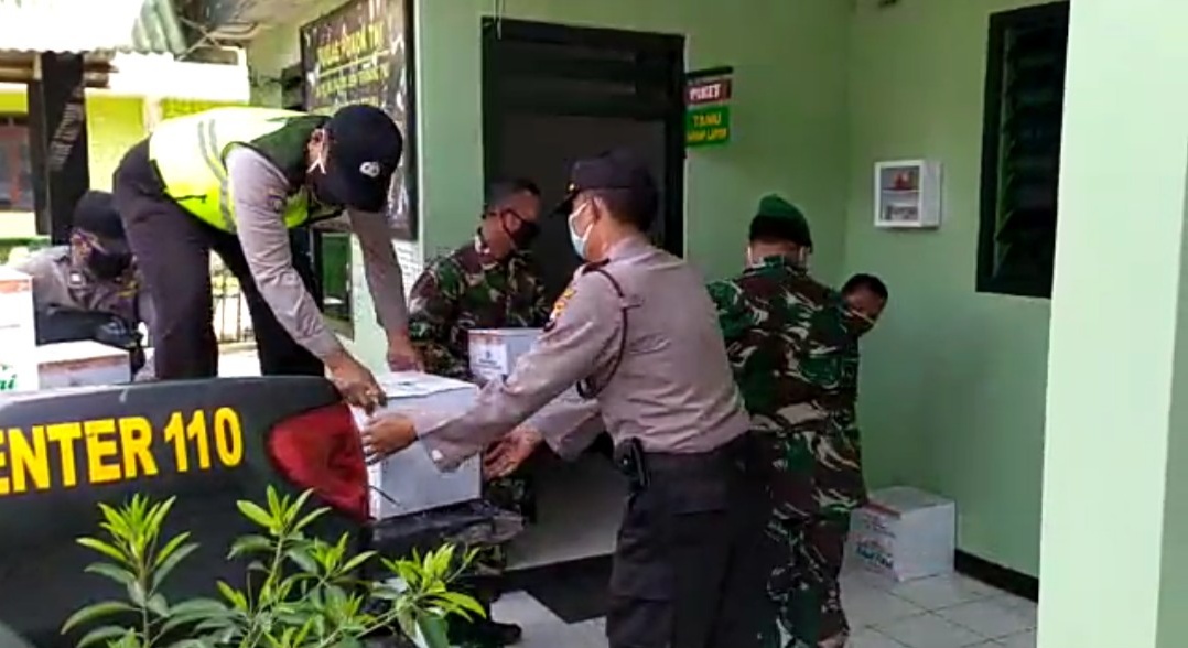 MASPOLIN || Bojonegoro – Kapolsek Sumberrrejo bersama anggota menyerahkan bingkisan lebaran kepada anggota Koramil 0813/09 Sumberrejo pada hari Selasa (12/05/2020) tadi di Mako Koramil 0813/09 Sumberrejo.