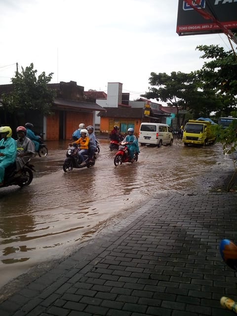 Jalanan yang tergenang air di karenakan posisi jalan telah mengalami penurunan(Ambles) solusinya di naikkan lagi dengan cara di uruk dan di buat saluran resapan air, namun masalahnya ini bukan jalan Desa, melainkan jalan provinsi, dan ada anggaran APBD prov yang di khususkan untuk perbaikan dan perawatan jalan tersebut, tegas Mbah Geger,