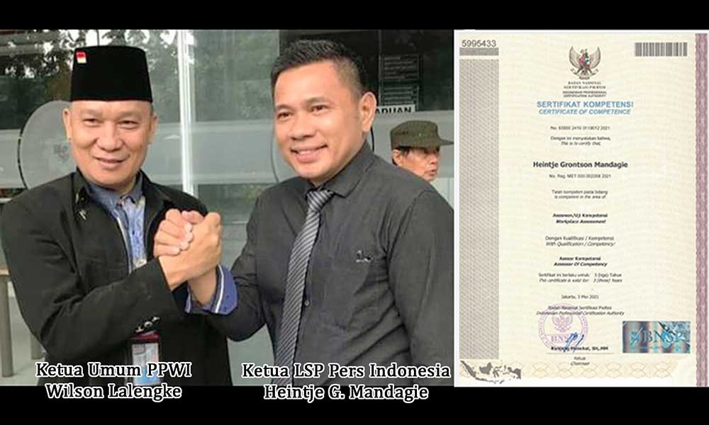 MASPOLIN || Jakarta – Persatuan Pewarta Warga Indonesia (PPWI) dengan tulus hati menyampaikan ucapan ‘Selamat dan Sukses’ kepada Lembaga Sertifikasi Profesi (LSP) Pers Indonesia atas pencapaian hasil perjuangannya dalam memperoleh pengakuan dan lisensi dari Badan Nasional Sertifikasi Profesi (BNSP). Hal tersebut disampaikan Ketua Umum PPWI, Wilson Lalengke, S.Pd, M.Sc, MA, kepada media-media se-nusantara sebagai respon atas informasi terkini tentang penyerahan Sertifikat Assessor Komptensi Khusus Wartawan kepada 24 orang peserta Pendidikan dan Latihan Assessor Kompetensi Wartawan yang tergabung dalam Team Assessor LSP Pers Indonesia.