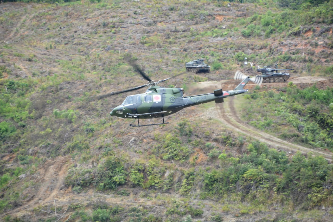 Simalungun—Maspolin.id || Pangdam I/BB, Mayjen TNI Hassanudin, SIP, MM, bersama Danpuslatpur Kodiklat TNI AD, Brigjen TNI Judi Paragina Firdaus melakukan peninjauan via udara kegiatan latihan Drill Tempur Yon Tim Pertempuran (YTP) R-100/PS di Dolok Panribuan, Kabupaten Simalungun, Sumatera Utara, Kamis (21/10/2021).