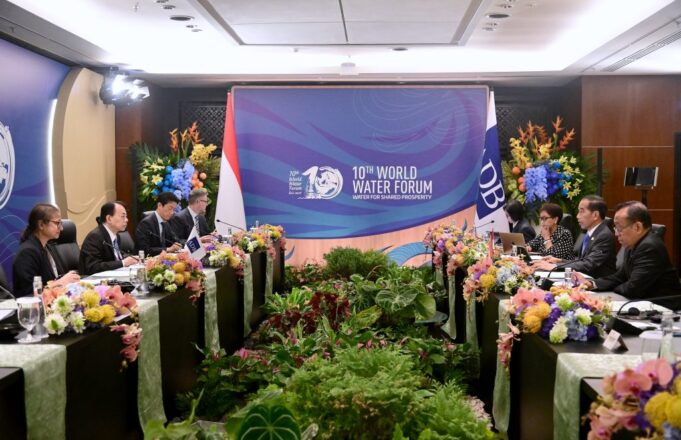 Maspolin.id|| Presiden Joko Widodo (Jokowi) mengapresiasi kemitraan yang telah berjalan selama 57 tahun antara Indonesia dan Bank Pembangunan Asia (ADB), terutama dalam mengatasi berbagai krisis termasuk pemulihan ekonomi pasca-pandemi. Hal tersebut disampaikan Presiden dalam pertemuan bilateral dengan Presiden ADB, Masatsugu Asakawa, di sela-sela Konferensi Tingkat Tinggi (KTT) World Water Forum ke-10, di Bali International Convention Center (BICC), Kabupaten Badung, Provinsi Bali pada Senin, 20 Mei 2024.