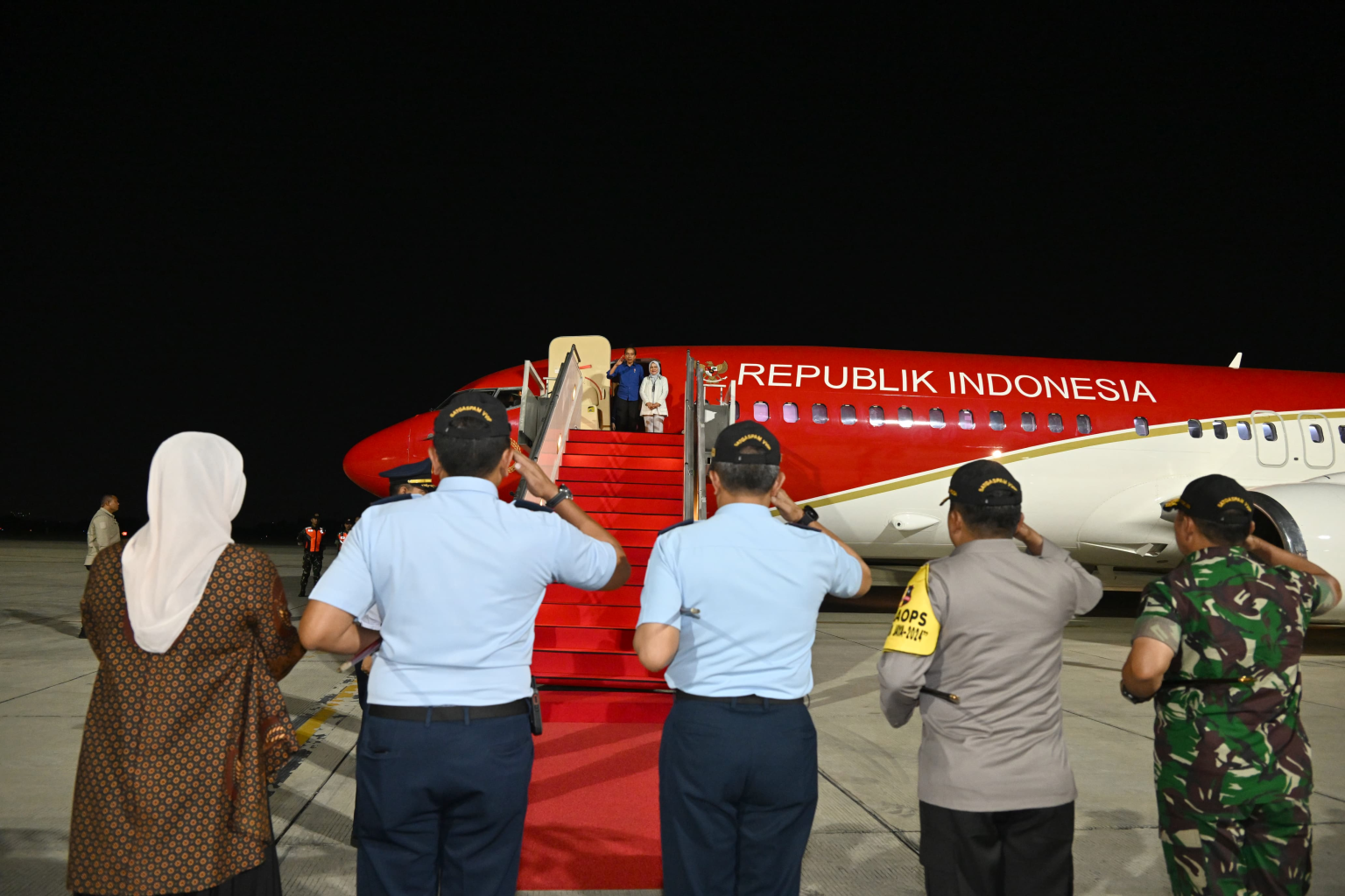 Maspolin.id|| Presiden Joko Widodo beserta Ibu Iriana Joko Widodo bertolak menuju Provinsi Jawa Timur guna melakukan kunjungan kerja. Pesawat Kepresidenan Indonesia-1 yang membawa Presiden Jokowi dan rombongan lepas landas dari Pangkalan TNI AU Halim Perdanakusuma, Jakarta, pada Kamis, 5 September 2024 sekitar pukul 19.00 WIB.