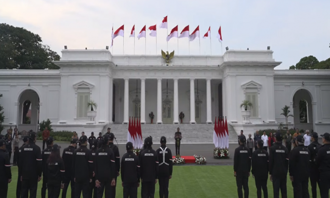 Maspolin.id|| Presiden RI Joko Widodo (Jokowi) melepas Tim Indonesia Menuju Olympic Games XXXIII Paris 2024, Rabu (10/07/2024) sore, di Halaman Depan Istana Merdeka, Jakarta. Pada kesempatan tersebut, Presiden mengajak para atlet untuk optimistis dan bertanding dengan penuh semangat.