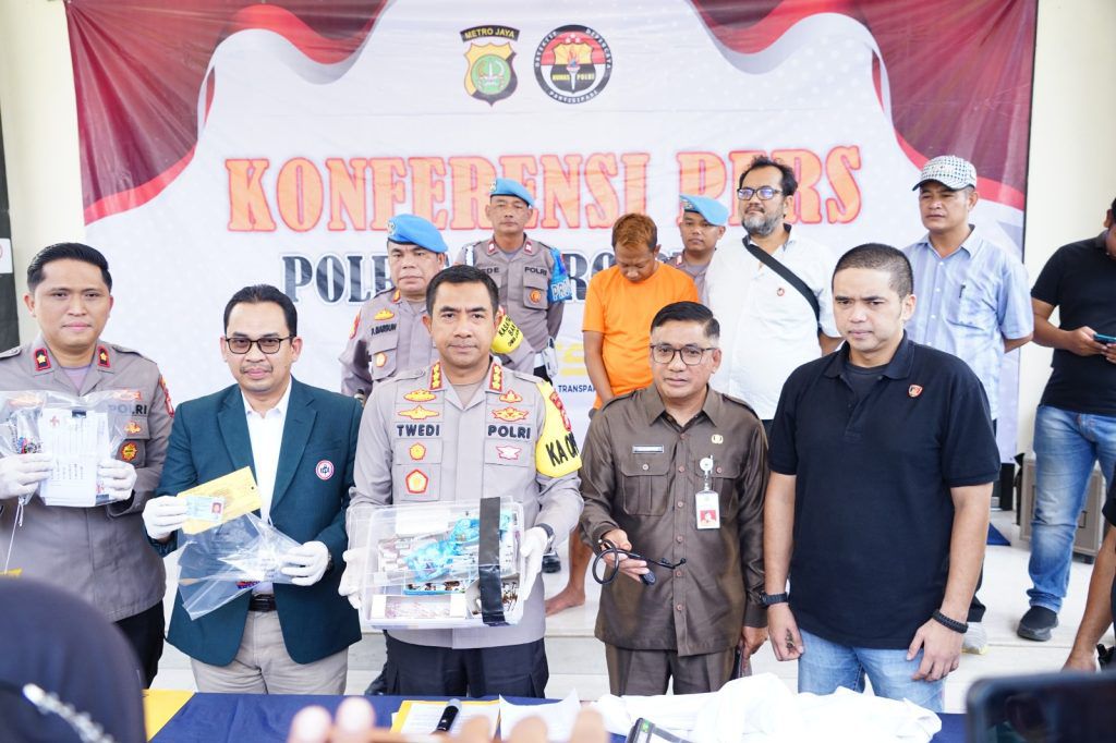 POLDA METRO JAYA – Maspolin.id|| Kapolres Metro Bekasi Kombes Pol. Twedi Aditya Bennyahdi memimpin konferensi pers penangkapan seorang pria berinisial ITB (39) yang bukan tenaga medis atau tenaga kesehatan telah melakukan praktek sebagai tenaga medis (Dokter Gadungan) dengan membuka prakter dokter umum yang tidak memiliki STR dan SIP yang lengkap.