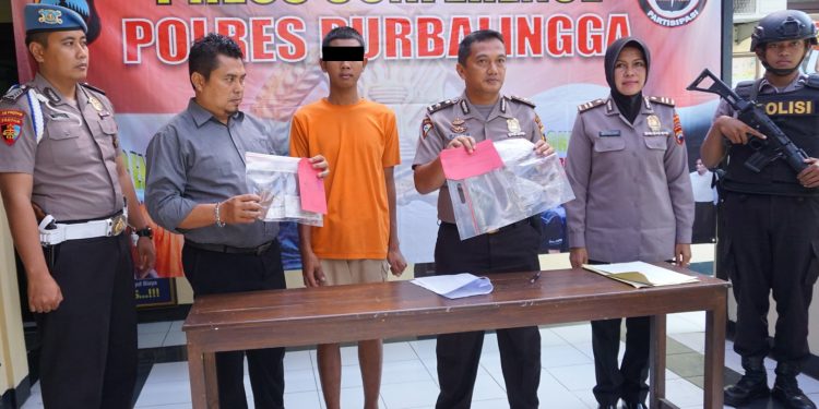 Kabagops menjelaskan pelaku yang sempat kabur akhirnya berhasil diamankan Satreskrim Polres Purbalingga. Pelaku diamankan di wilayah Kecamatan Klirong, Kebumen berikut barang buktinya.