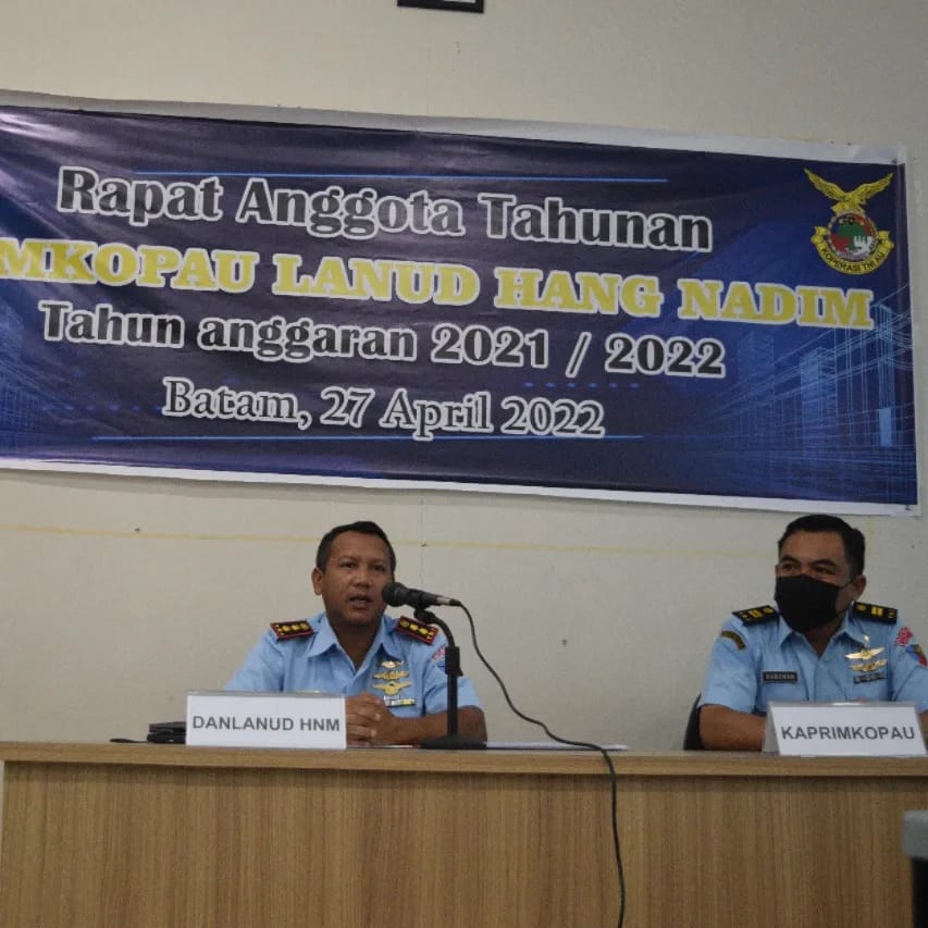 Batam ~ Maspolin.id // Primer Koperasi Angkatan Udara (Primkopau) Lanud Hang Nadim (Hnm) menggelar Rapat Anggota Tahunan (RAT) di Ruang briefing Lanud Hang Nadim, Batam. Rabu(27/04).