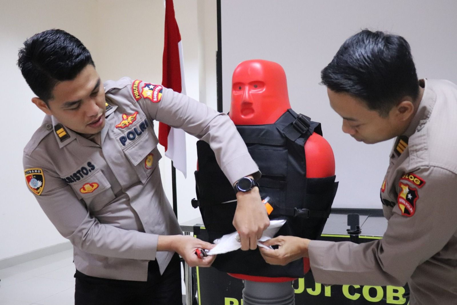 JAKARTA – Maspolin.id|| Komitmen dalam meningkatkan teknologi keamanan dilingkungan kepolisian, Pusat Penelitian dan Pengembangan Kepolisian Negara Republik Indonesia (Puslitbang Polri) melalui Bagian Laboratorium Teknologi Kepolisian (Baglabtekpol) Kali ini, Baglabtekpol telah melaksanakan kegiatan sertifikasi dengan rangkaian presentasi, demonstrasi, dan uji coba terhadap Interfare Rompi Anti Sayat dan Senter Bhabinkamtibmas.