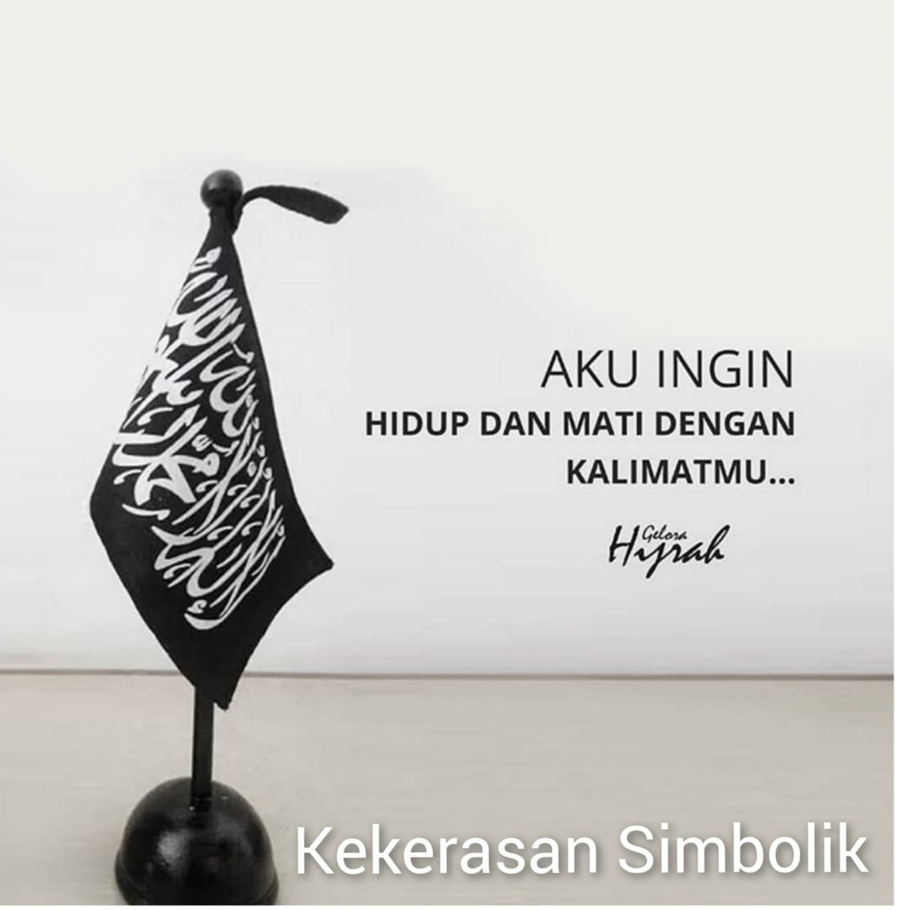 Kekerasan simbolik melalui bendera rayah yang berwarna hitam kerap ditunjukkan HTI di tempat-tempat umum. Bendera rayah yang berwarna hitam adalah bendera perang.