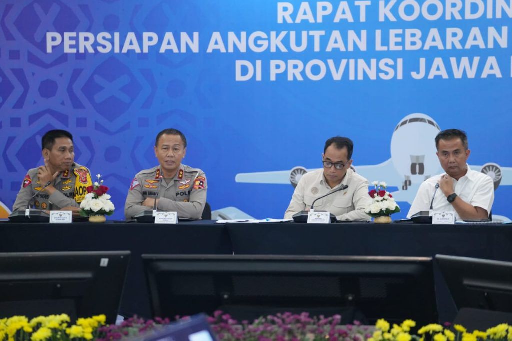 BANDUNG – Maspolin.id|| Kakorlantas Polri Irjen Pol Aan Suhanan bersama Menteri Perhubungan Budi Karya Sumadi menghadiri rapat koordinasi persiapan angkutan lebaran 2024/1445H di Provinsi Jawa Barat. Kegiatan digelar di Gedung Pakuan Rumah Dinas Gubernur Jabar, Bandung Minggu (31/3).