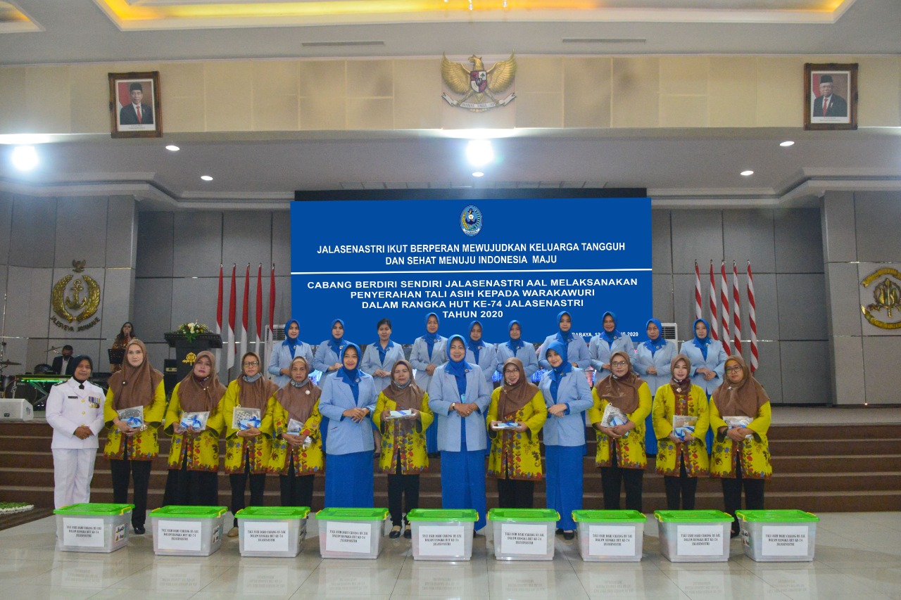 MASPOLIN || Surabaya – Dalam rangkaian Hari Jadi ke-74 Jalasenastri (organisasi istri prajurit TNI AL) tahun 2020, Cabang Berdiri Sendiri Jalasenastri Akademi Angkatan Laut (AAL) memberikan tali asih kepada Warakawuri (janda prajurit TNI), yang digelar di Gedung Maspardi, Kesatrian AAL, Bumimoro, Surabaya, Rabu (12/8).