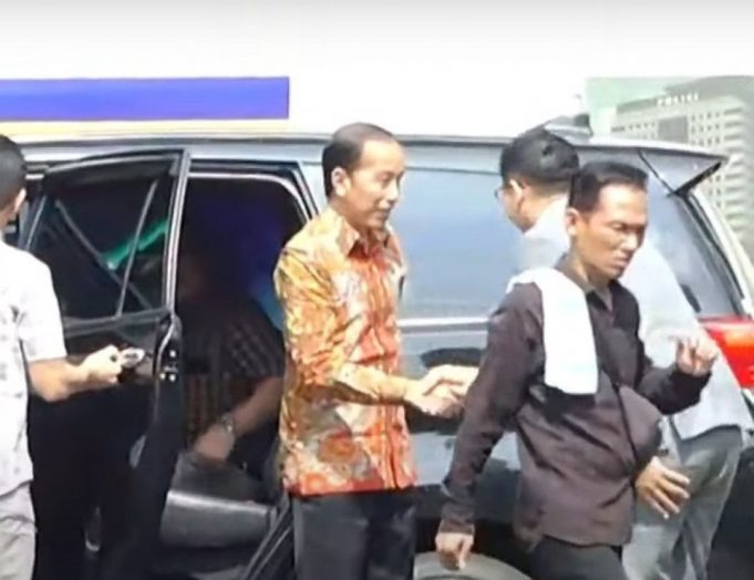Tak ada yang disampaikan Jokowi kepada awak media. Jokowi langsung masuk ke dalam gedung SPKT Polda Metro Jaya.