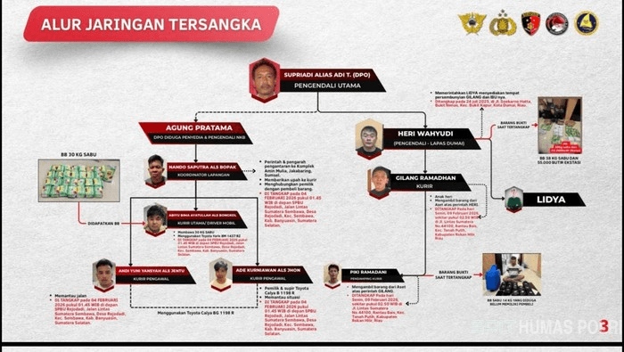 Eko memaparkan, Supriadi terhubung dengan sindikat yang dikomandoi Nando Saputra alias Bopak di Banyuasin, serta jaringan di Riau yang dikendalikan narapidana Lapas Kelas IIB Dumai, Heri Wahyu.