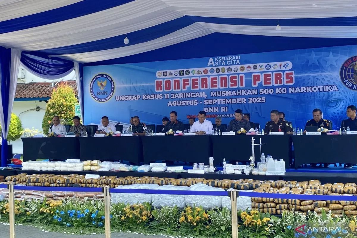 “Pada periode Agustus sampai September, total barang bukti narkotika yang diamankan 503.715,65 gram atau hampir setengah ton lebih,” ujar Kepala BNN Komjen Pol Suyudi Ario Seto, Senin (15/9/2025).