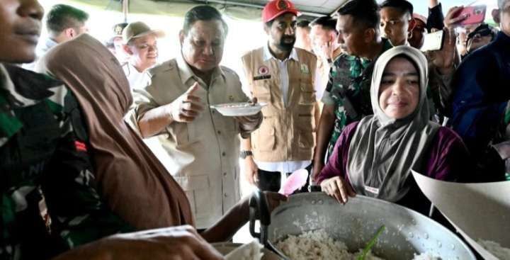 Presiden Prabowo kemudian bergerak menuju dapur umum untuk meninjau langsung persiapan distribusi pangan untuk pengungsi. Di sana, Presiden berbincang dengan para relawan dan memastikan stok logistik tetap tersedia. Kepala Negara bahkan turut mencicipi nasi dan ikan tongkol, menu makan siang yang disiapkan untuk para pengungsi.