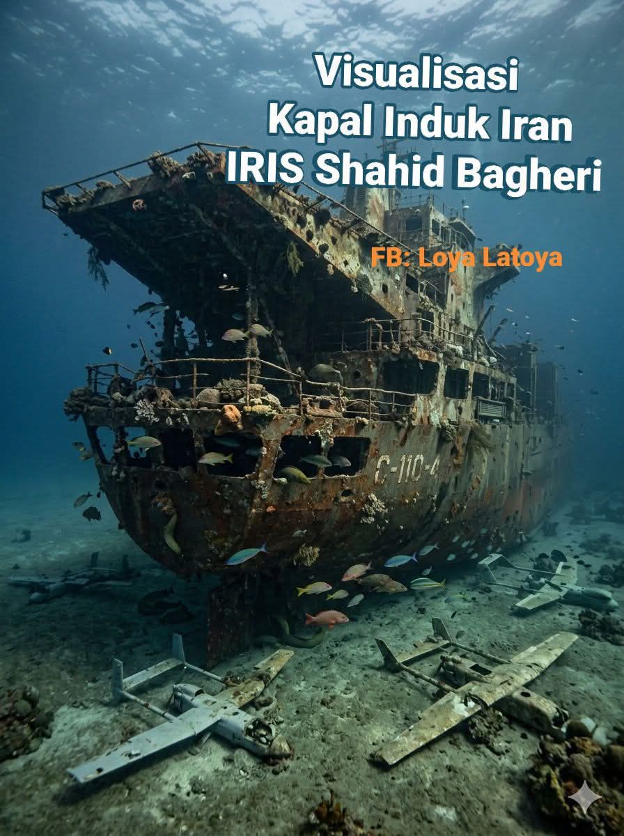 Kapal induk drone pertama Iran, IRIS Shahid Bagheri, yang sebelumnya menjadi simbol kekuatan asimetris dan kebanggaan Angkatan Laut Korps Garda Revolusi Islam (IRGC), kini dilaporkan telah tenggelam dan menjadi bagian dari ekosistem bawah laut.