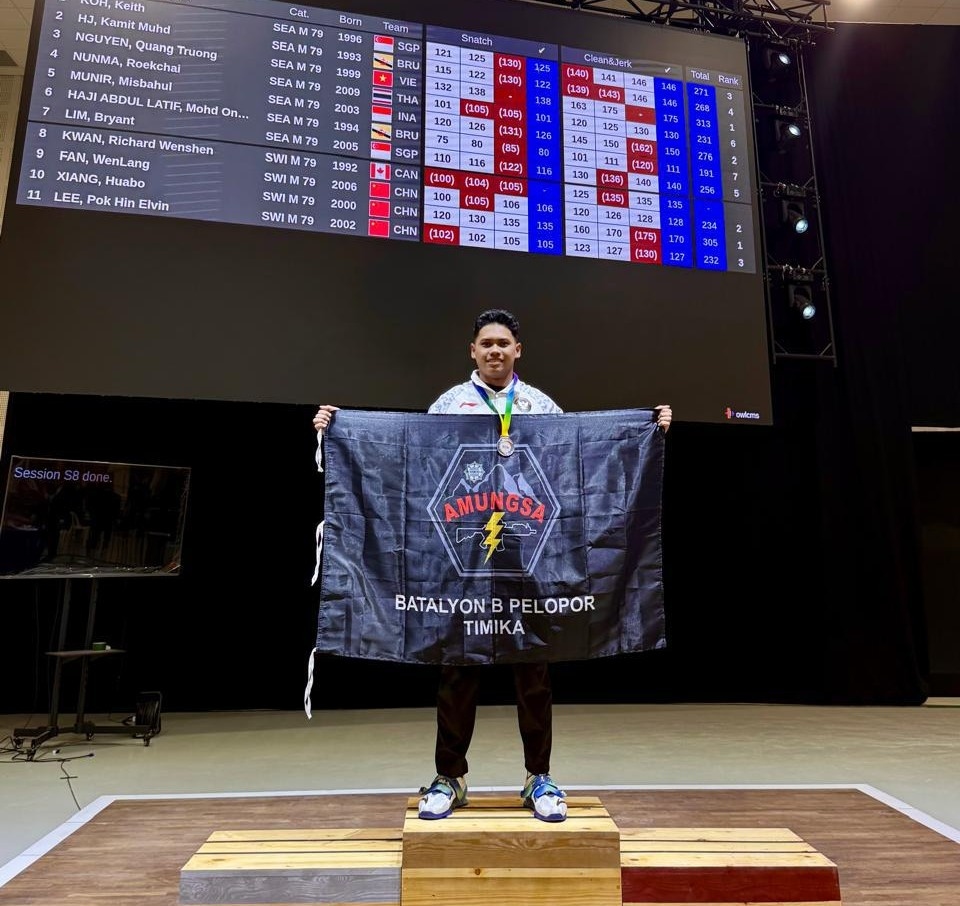 Bripda Munir yang mewakili Indonesia bertanding pada kelas 79 Kg, berhasil mengangkat beban Snatch 126 KG, Clean and Jerk 150 KG dengan total angkatan 276 Kg. dalam kompetisi bergengsi tersebut, menunjukkan kemampuan luar biasa dan semangat juang tinggi di setiap angkatannya.
