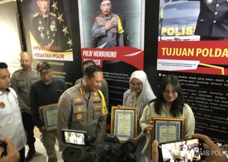 Piagam penghargaan diserahkan langsung oleh Kapolresta Jogja Kombes Eva Guna Pandia di Mapolresta Jogja, Rabu (11/2/2026). Selain Eviana, penghargaan juga diberikan kepada rekannya Ayunda, serta dua warga Pakel Baru yang ikut mengamankan pelaku, yakni Fandy Yulianto dan Handoko.