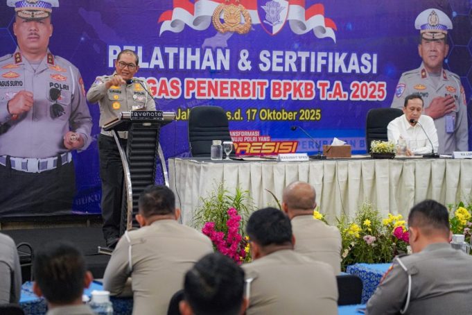 KORLANTAS POLRI, JAKARTA – Maspolin.id|| Kegiatan Sertifikasi Petugas Penerbit Buku Pemilik Kendaraan Bermotor (BPKB) Tahun Anggaran 2025 resmi dibuka pada Selasa (14/10/2025) di Cililitan, Jakarta. Pembukaan dilakukan langsung oleh Kasubdit BPKB Ditregident Korlantas Polri, Kombes Pol Sumardji. Kegiatan ini menjadi langkah strategis dalam mendukung transformasi digital layanan kepolisian, termasuk implementasi BPKB elektronik.