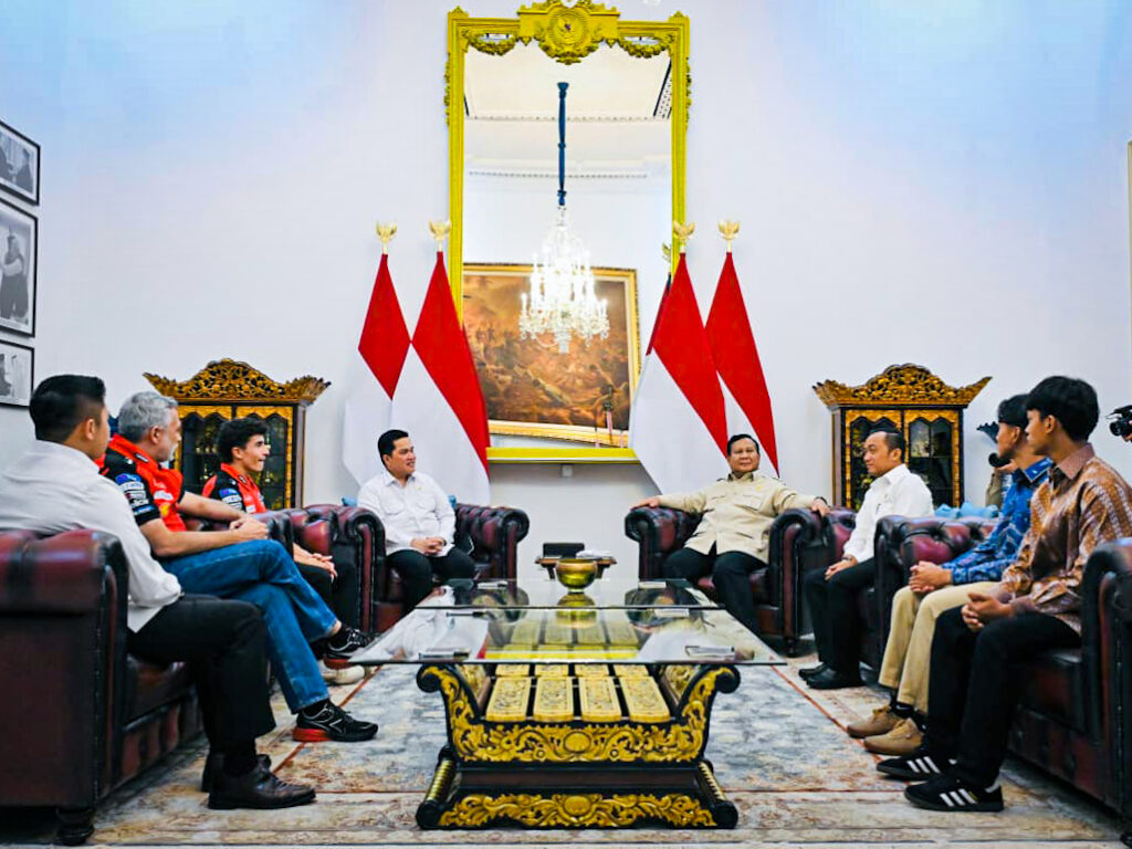 JAKARTA – Maspolin.id|| Presiden Prabowo Subianto menekankan pentingnya pengembangan sport tourism serta pembinaan atlet nasional saat menerima kunjungan juara dunia MotoGP Marc Marquez bersama dua pembalap muda Indonesia, Mario Aji dan Veda Ega Pratama, di Istana Merdeka, Jakarta, pada Selasa, 30 September 2025.