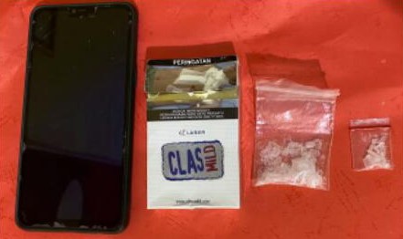 Terduga tersangka , MGM Bin BN (21) warga jalan sinar hijau desa kota baru kecamatan Martapura kabupaten OKU Timur , Dengan sejumlah barang bukti diantaranya 2 ( dua ) paket kecil narkotika jenis sabu yang dibungkus dengan plastik klip bening dengan berat bruto 2,90 gram , satu buah kotak rokok merk classmild , satu helai celana panjang warna biru merk Buti , satu unit HP merk Oppo warna hitam , satu unit mobil Honda Mobilio warna grey dengan nomor polisi BG 1835 QY .