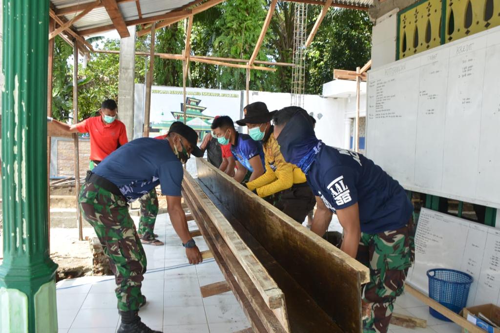 MASPOLIN || AAL, Latsitardanus XLI – Setelah dua pekan berjalan, renovasi Masjid Ikhwanul Muslimin dan Bedah Rumah Tidak Layak Huni (RTLH) rumah warga yang dilakukan Satuan Latihan-2 Hiu, Latsitardanus XLI tahun 2021 di Lingkungan 9 Desa Mencirim, Kota Binjai, Sumatra Utara memasuki tahap akhir.
