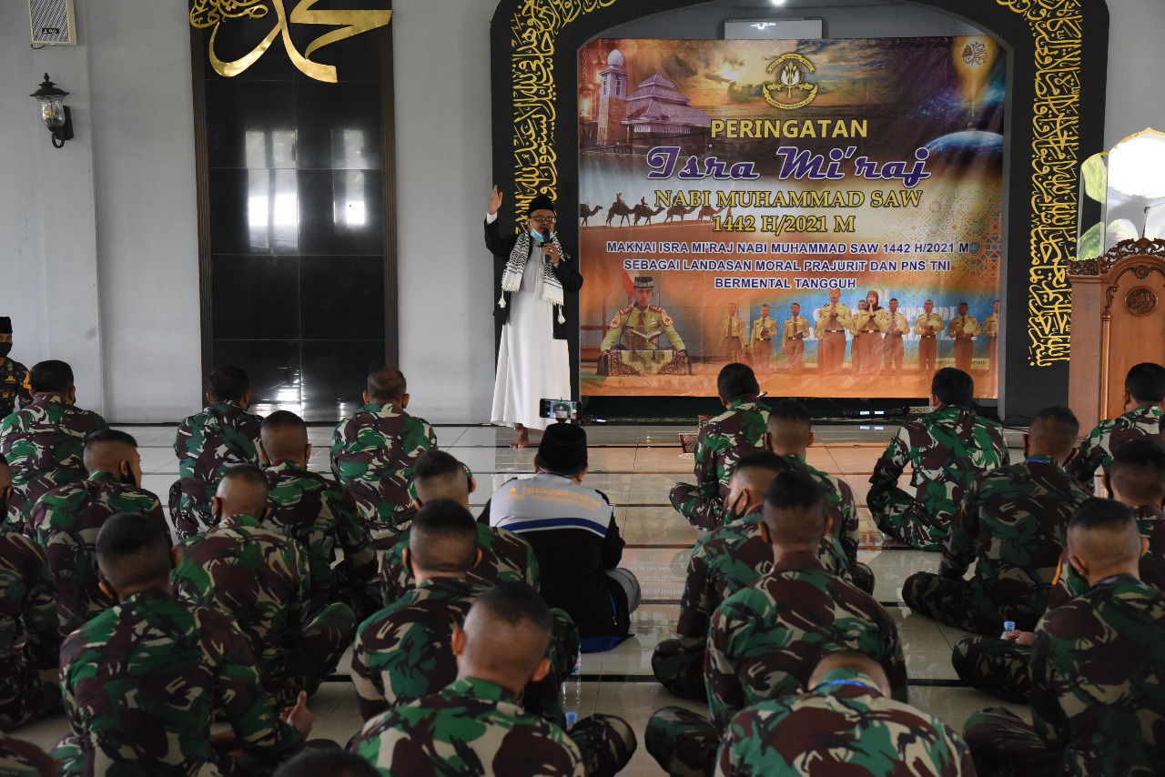 Peringatan yang mengusung tema “Makna Isro Mi’raj Nabi Muhammad SAW 1442 H sebagai Landasan Moral Prajurit dan PNS Bermental Tangguh ini”, dibuka Gubernur AAL, Laksamana Muda TNI Tunggul Suropati, S.E., M.Tr (Han).