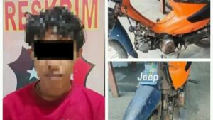 Pesawaran – Maspolin.id ||Polres Pesawaran,Polda Lampung _Pada hari rabu tanggal 05 April 2023 sekira jam 22.30 WIB di desa Cipadang kecamatan Gedong Tataan, kabupaten Pesawaran telah terjadi tindak pidana pencurian dengan pemberatan 1 (satu) unit sepeda motor merk Suzuki Shogun warna hitam tahun 1996 dengan no.pol : BE 8094 AR, a.n Drs.H.Basyuni. TH.K yang dilakukan oleh pelaku bernama Perli., terhadap korban Saprudin , dengan cara sdr. Perli dkk mengambil sepeda motor korban yang sedang diparkirkan dibelakang rumah korban, lalu saat pelaku mendorong sekira 50 meter menjauh dari rumah korban, anak korban ALVIN melihat pelaku dan langsung mengejar pelaku bersama masyarakat sekitar namun tidak terkejar.