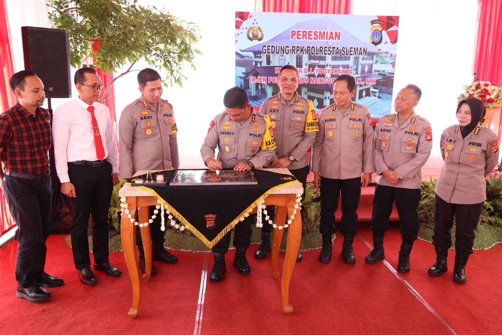Peresmian gedung dilaksanakan secara simbolis dengan penandatanganan prasasti dan potong pita dan dilanjutkan dengan pengecekan ruangan oleh Kapolda dan Pejabat Utama Polda DIY.