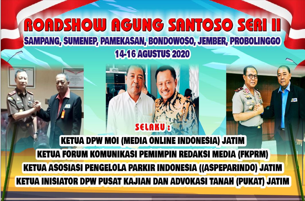 MASPOLIN || Surabaya – Agung Santoso yang dikenal sebagai Ketua DPW MOI (Media Online Indonesia) dan Ketua Forum Pemimpin Redaksi Media (FKPRM) kembali melakukan roadshow.