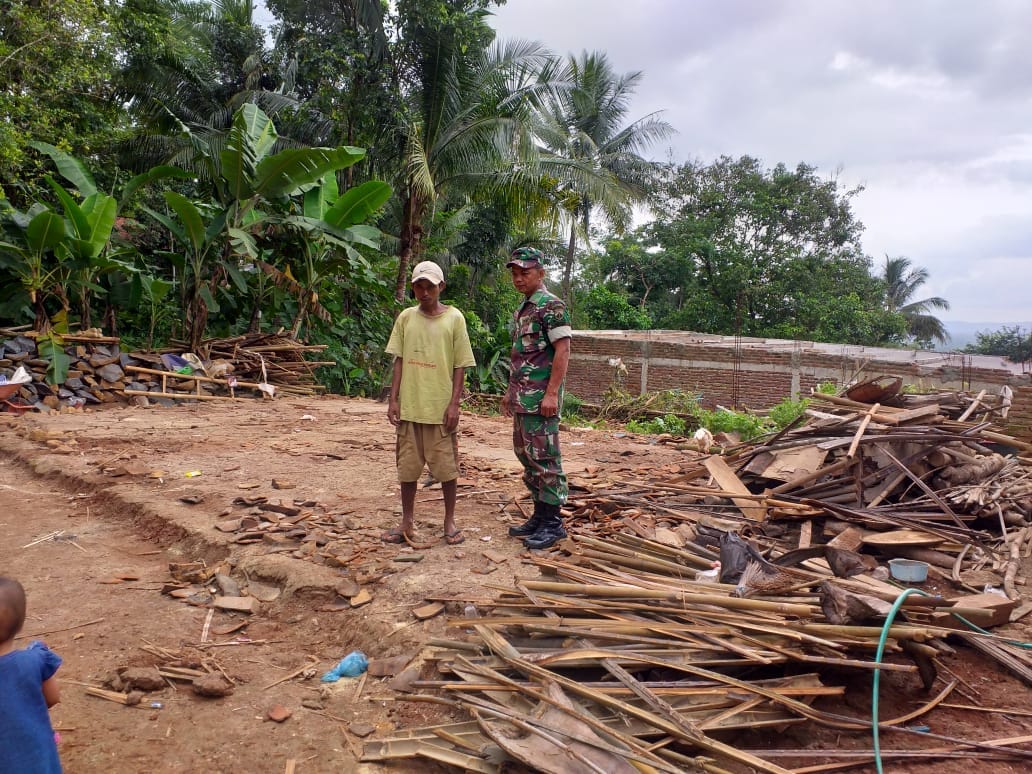 Kepala desa dan kepala dusun setempat segera melakukan pembersihan bersama Babinsa, yakni menyingkirkan puing reruntuhan dan mengevakuasi sebagian perabot yang masih bisa digunakan. (Estanto)
