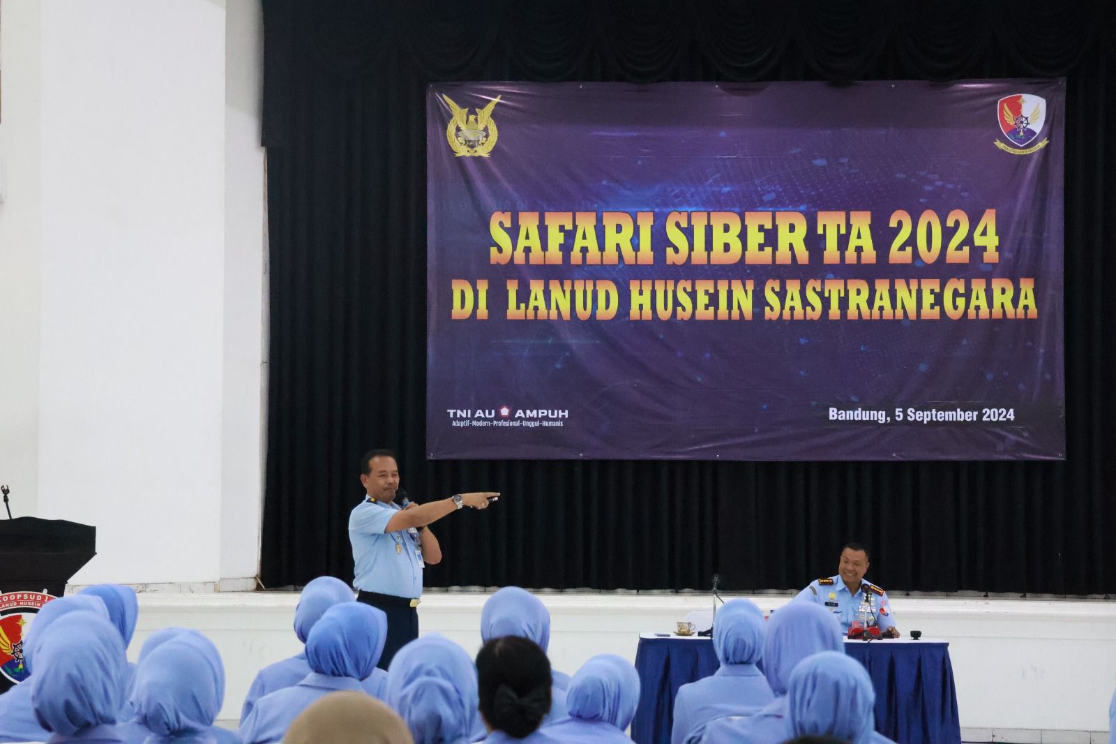 Komandan Lanud Husein Sastranegara, Kolonel Pnb Kolonel Pnb. Alfian, S.E., M.Han., dalam sambutannya menegaskan pentingnya kesadaran siber di era digital saat ini. “Ancaman siber semakin kompleks dan canggih. Oleh karena itu, seluruh personel harus memiliki pengetahuan yang cukup untuk melindungi diri serta institusi dari serangan digital yang dapat merusak sistem informasi,” ujar Danlanud.