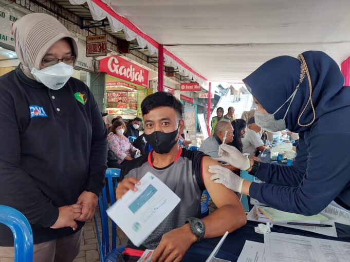 Ratusan warga dari berbagai kecamatan nampak memenuhi tenda yang berdiri di halaman parkir pasar untuk memeriksakan kesehatannya.
