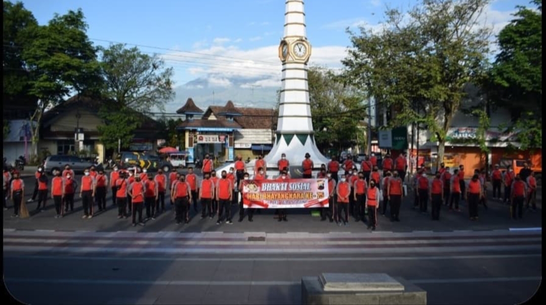 Temanggung,maspolin.id- Dalam rangka menyambut Hari Ulang Tahun ( HUT ) Bhayangkara Ke-75 Tahun 2021, Polres Temanggung, Polda Jateng melaksanakan Bakti Sosial ( Baksos ) berupa membersihkan Tempat Ibadah, Fasilitas Umum, penanaman pohon dan penyemprotan disinfektan di beberapa titik guna antisipasi penyebaran Covid-19 di Kabupaten Temanggung