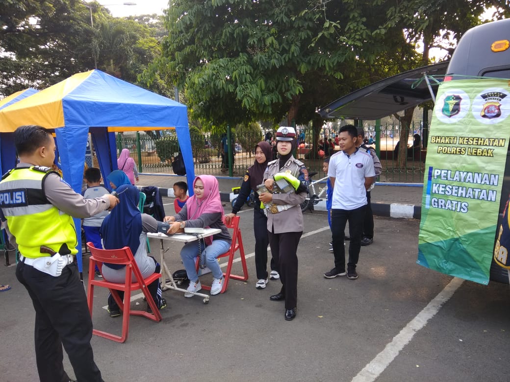 Banten,Maspolin.id – Kabupaten Lebak. Satuan Lalulintas Kepolisian Resor Lebak (Polres Lebak) bersama Biddokes Polda Banten dalam rangka menyambut Hari Ulang Tahun (HUT) Lalulintas Bhayangkara ke 64, telah melakukan bakti sosial pengobatan untuk masyarakat, bertempat di Alun Alun Kota Rangkasbitung, Minggu, (08/09/2019).