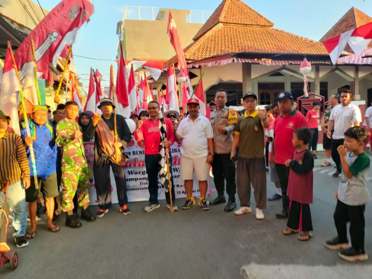 Gajahmungkur – Maspolin.id ||Dalam rangka menyambut perayaan ulang tahun kemerdekaan Republik Indonesia Ke-78 Bhabinkamtibmas Polsek Gajahmungkur Kelurahan Sampangan Aiptu Septriyanto bersama Babinsa melaksanakan pengamanan kegiatan jalan sehat warga RW 7 Kelurahan Sampangan bersama Santri Ponpes Mahasiswa Al Hikmah dan Keluarga Besar PAC LDII Kelurahan Sampangan Kecamatan Gajahmungkur Kota Semarang, Minggu (13/8/2023).