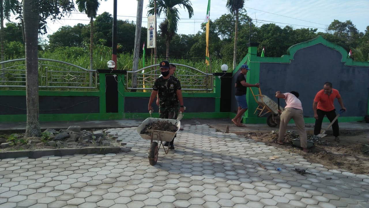 Sambas,maspolin.id- Serda Naziri, Babinsa Desa Nibung bersama masyarakat warga binaan melaksanakan kgiatan Karya Bakti bergotong royong membersihkan tumpukan sisa matrial bangunan yang ada di sekitar Masjid Rahmatullah dalam menyambut hari Raya Idul Adha 1442H tahun 2021 dan penyiapan tempat pemotongan hewan kurban disekitar halaman Masjid Jalan Liku Desa Nibung Kec. Paloh Kab. Sambas, Sabtu (17-7-21)