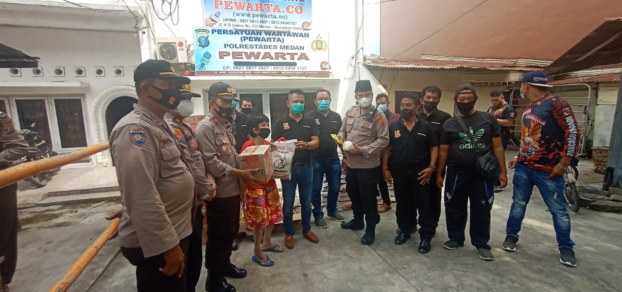 Pembagian paket sembako yang saat ini suasana masih dalam pandemi virus corona atau Covid-19 dilakukan di Kantor Pewarta Polrestabes Medan, Jalan AR Hakim No. 123 Kecamatan Medan Area, Jumat (5/2/2021) siang.