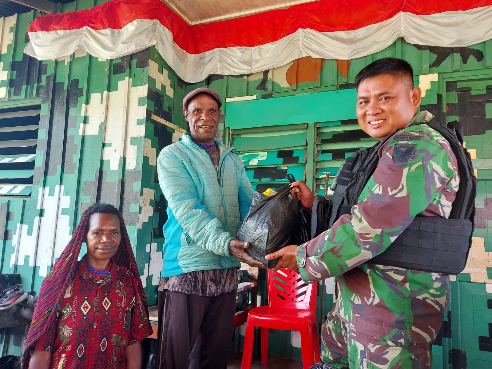 Sambut Perayaan Paskah, Satgas Yonif R 142 Berbagi Kasih Dengan Masyarakat Papua