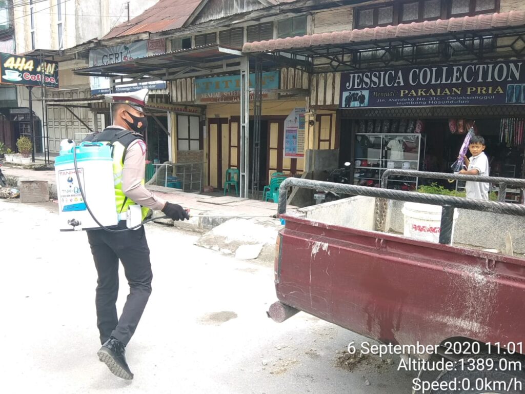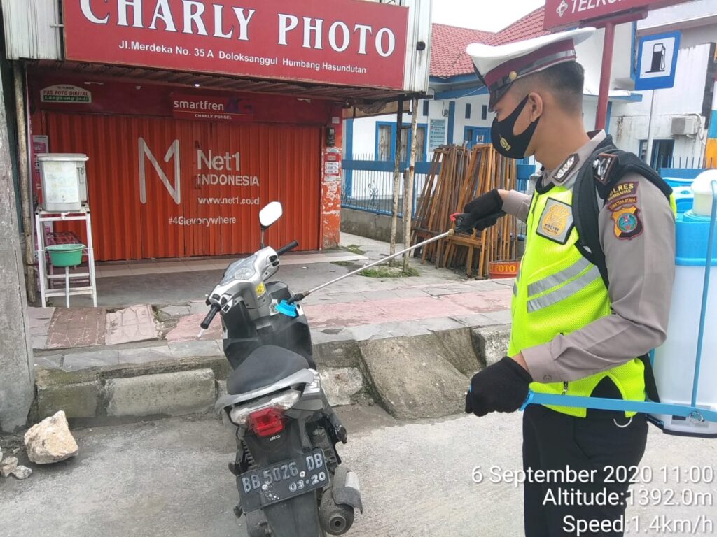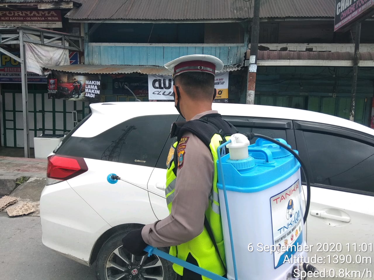 Dalam melaksanakan kegiatan operasi Aman Nusa II Toba 2020 sebut Paur Subbag Humas Polres Humbahas Bripka SB Lolo Bako Personil Sat Lantas Polres Humbahas melakukan penyemprotan Disinfektan terhadap kenderaan Ranmor, Angkutan umum, dan mobil milik masyarakat dalam rangka pencegahan penyebaran Covid-19.
