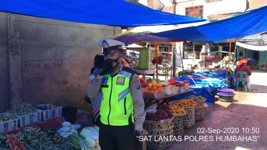 Doloksanggul, Maspolin.id—Personil Satuan Lalulintas Polres ( Sat – Lantas ) Humbahas Melaksakan Kegiatan Operasi Kontinjensi Aman Nusa II Toba 2020 Tepatnya Berada di Dua Tempat Berbeda Jalan Ricardo dan di Pasar Tradisional Kecamatan Doloksanggul Kabupaten Humbang Hasundutan, Pada Hari Rabu tanggal 02 september 2020 Pukul 11.00 wib Sampai Dengan Selesai.