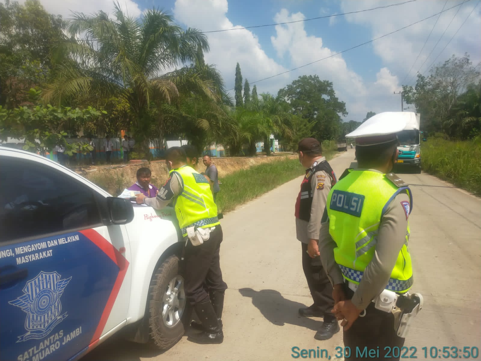 Saat Personel Satlantas Polres Muaro Jambi Melaksanakan patroli beat dan patroli hunting truck BB yg melanggar jam operasional