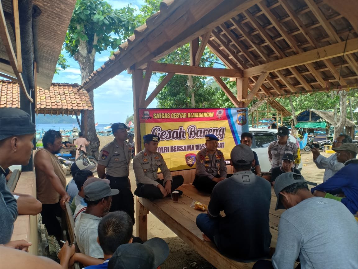 Banyuwangi-maspolin.id, Pada hari Jum’at tanggal 7 Februari 2020 pukul 09.00 WIB, Sat Polairud Polresta Banyuwangi melaksanakan kegiatan program unggulan Kapolresta Banyuwangi yaitu GEBYAR (Gesah Bareng) dan GEMA (Gerakan Kemanusiaan) dengan meningkatkan kedekatan dengan masyarakat pesisir dan nelayan serta memberikan penyuluhan agar mengutamakan keselamatan saat berlayar, menggunakan jaket pelampung, menangkap ikan menggunakan alat tangkap ramah lingkungan dan menjaga kebersihan lingkungan pesisir pantai.
