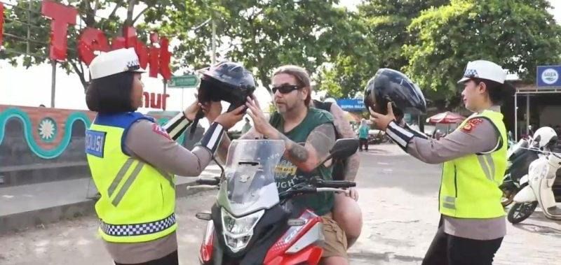 Personel juga membagikan brosur keselamatan berlalulintas kepada para pengunjung Pantai Sanur dan wisatawan baik asing maupun lokal, serta membagikan helm kepada WNA yang ditemukan tidak mengenakan helm saat berkendara.