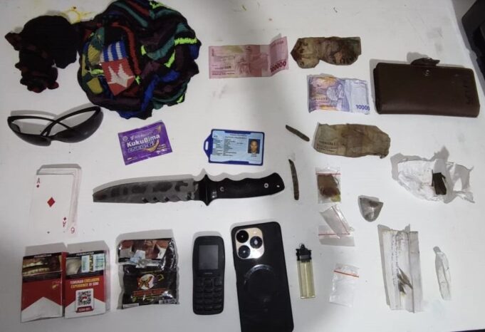 Diketahui bahwa, dari penangkapan tersebut, pihak Kepolisian berhasil amankan barang bukti berupa satu bilah sangkur, satu dompet, satu noken, satu noken kepal, satu KTP kabupaten Puncak atas nama Les Mosip, uang pecahan Rp. 113.000, satu unit HP Itel A70, satu unit HP Nokia 105 tanpa SIM card.